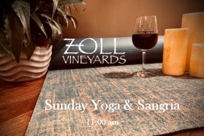 The first part of your experience will be a 45 minute, all-level, yoga flow to center your mind and expand your senses in preparation for a fun and fruity glass of Zoll Vineyards Sangria, to add a little flavor to your practice!