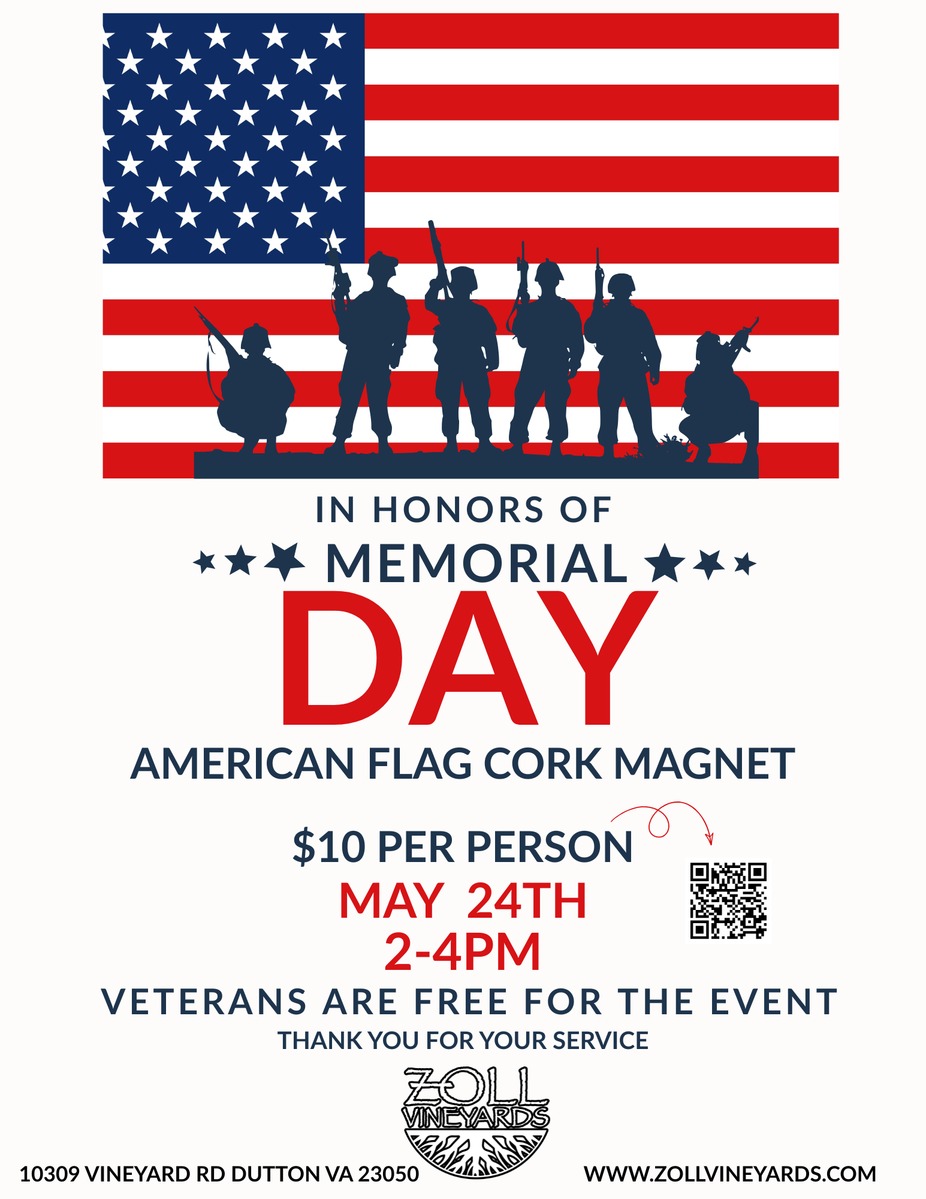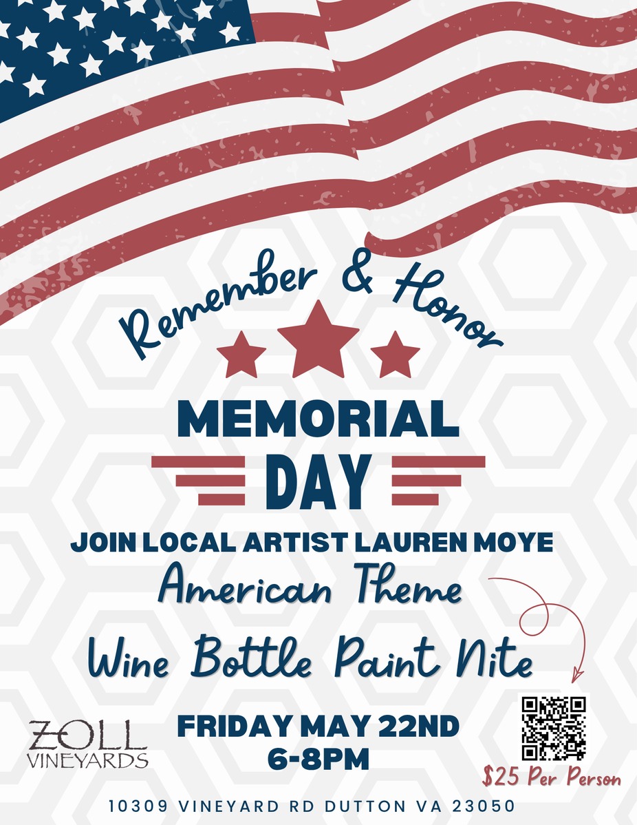 Join us for a special evening of creativity, wine, and remembrance as we celebrate Memorial Day at Zoll Vineyards.