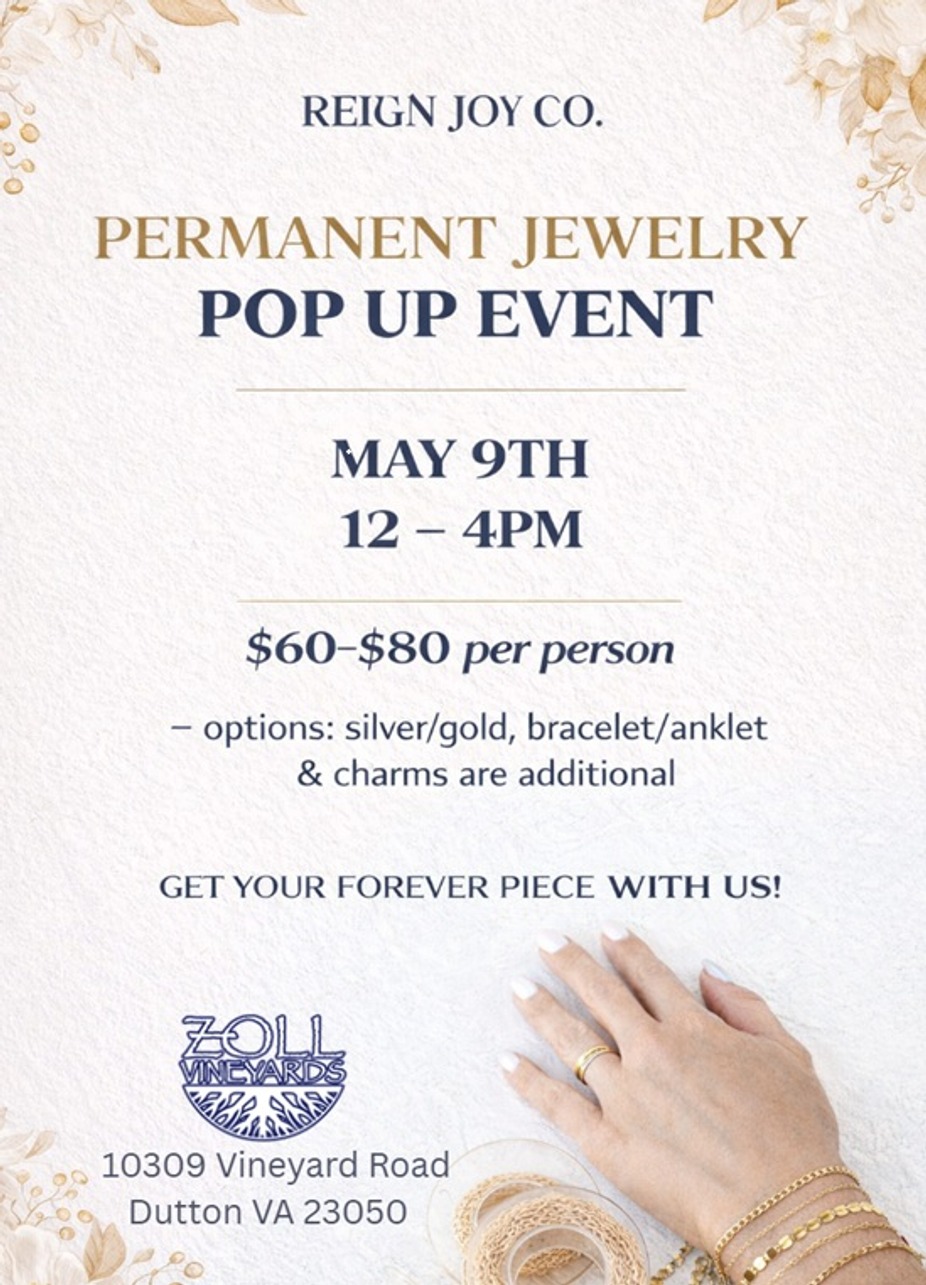 Text 804-815-7641 to register or Tickets are available here: Zoll Vineyards