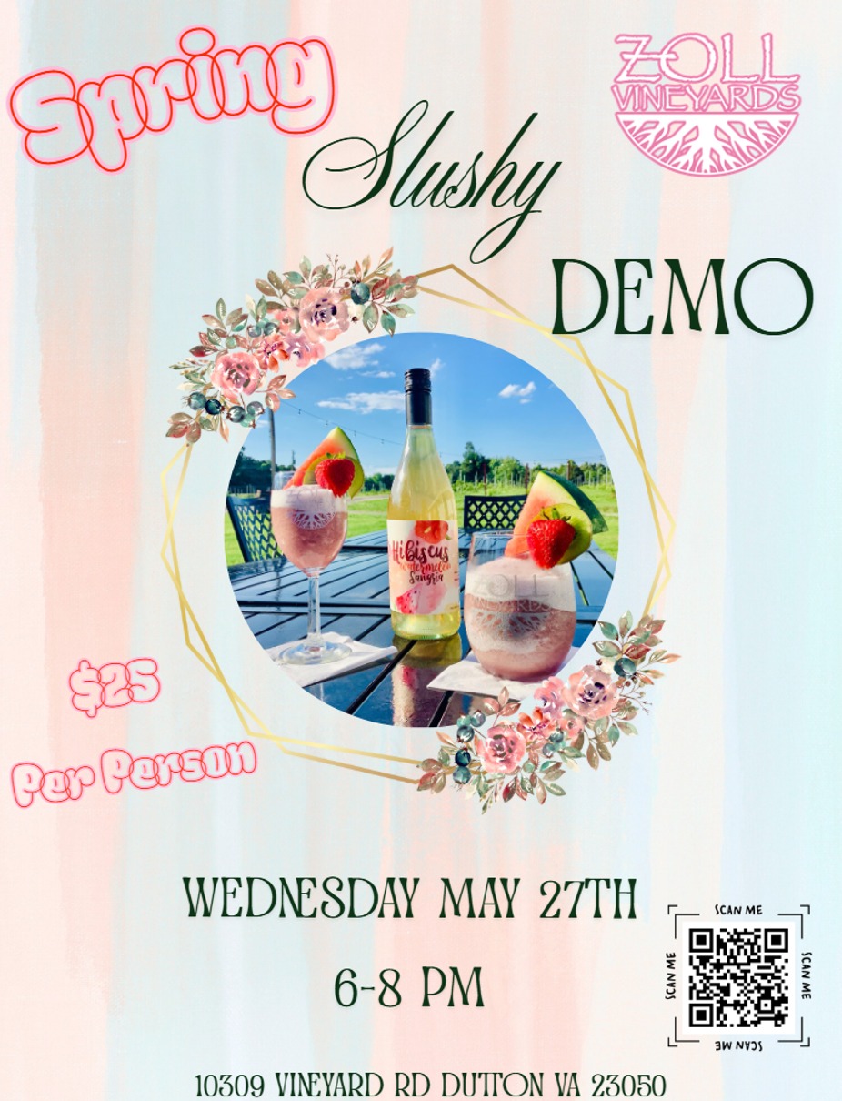 Sip into spring with us at Zoll Vineyards for a refreshing and fun Slushy Demo Night! Learn how we create our delicious wine slushies and enjoy a relaxing evening at the vineyard.