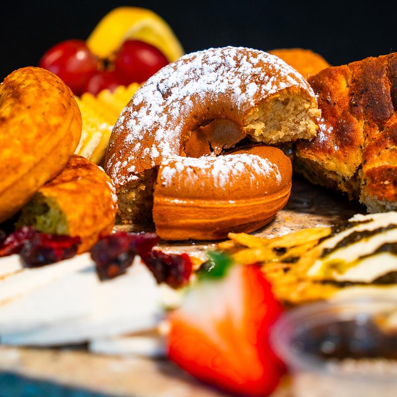 Toasted cornbread donut, house-made focaccia, cranberry donut, & biscuits served with hickory, pesto, strawberry, & pumpkin spice whipped butters, green tomato jelly, pepper jelly, grapes, nuts, rosemary salt, & strawberries | Pair with Unoaked Chardonnay or Cabernet Franc