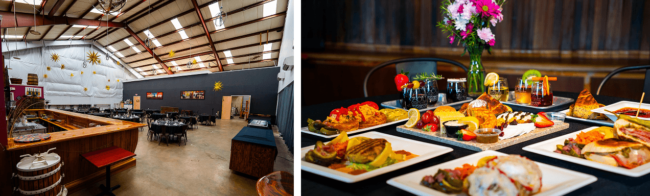 The winery tasting room has a rustic wine county vibe that can comfortably seat about 40 people for tasting & pairing with our farm to table menu. Enjoy the sunshine and fresh air on our patio at 4 seat tables under umbrellas, weather permitting.